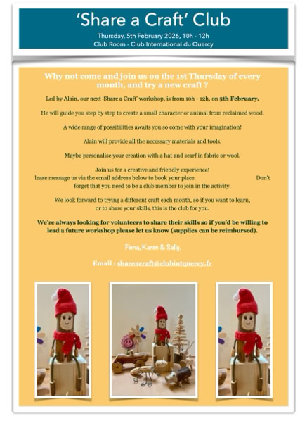 some members of the Quercy international club meet for a "Share a Craft" workshop. In an always warm and relaxed atmosphere, everyone brings their know-how, their curiosity and their desire to create.