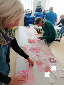 la créativité s’est mise au service de la solidarité. À l’occasion d’Octobre Rose, quelques membres du club se sont réunis autour d’un beau projet collectif : la création d’un patchwork aux mille nuances de rose, symbole de soutien à la lutte contre le cancer. De nombreuses mains, essentiellement féminines mais pas que…, ont participé à cette aventure textile. Chacun a apporté sa touche personnelle, un carré de tissu à son image, plein de douceur et d’espérance. Assemblés avec soin, ces carrés forment aujourd’hui une véritable œuvre commune, vibrante de couleurs et de générosité.