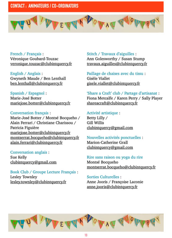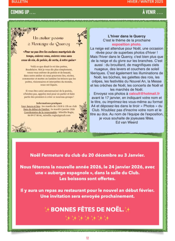 Tout au long de l’année, l’association propose :