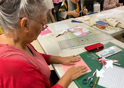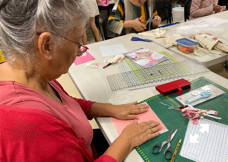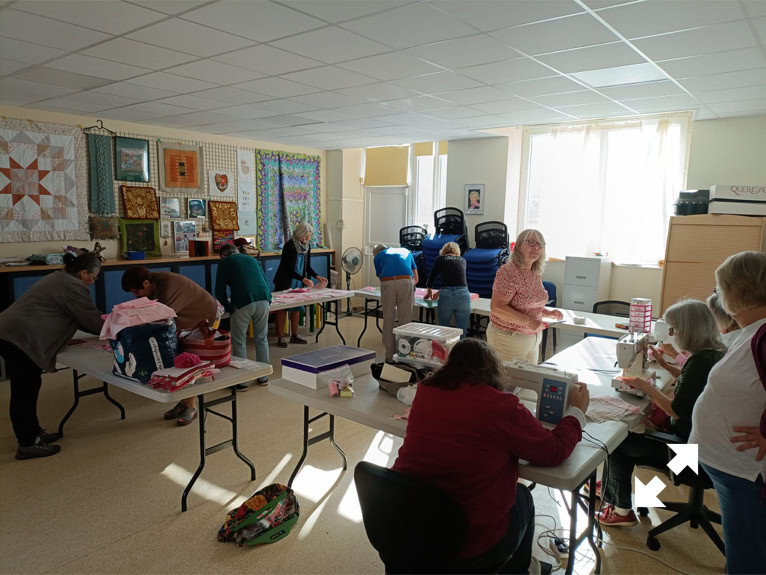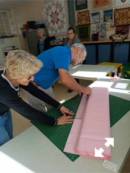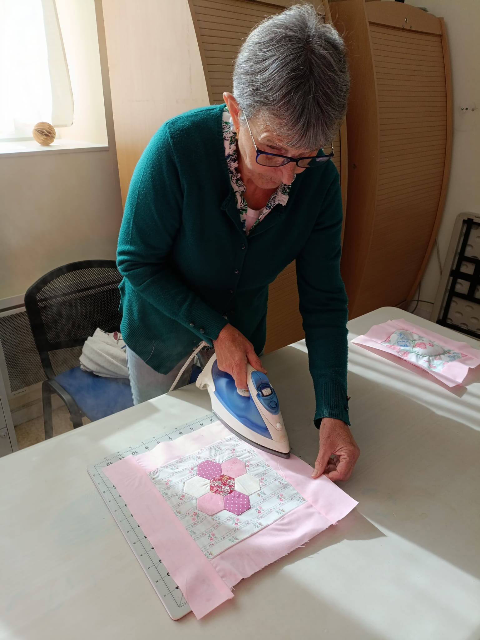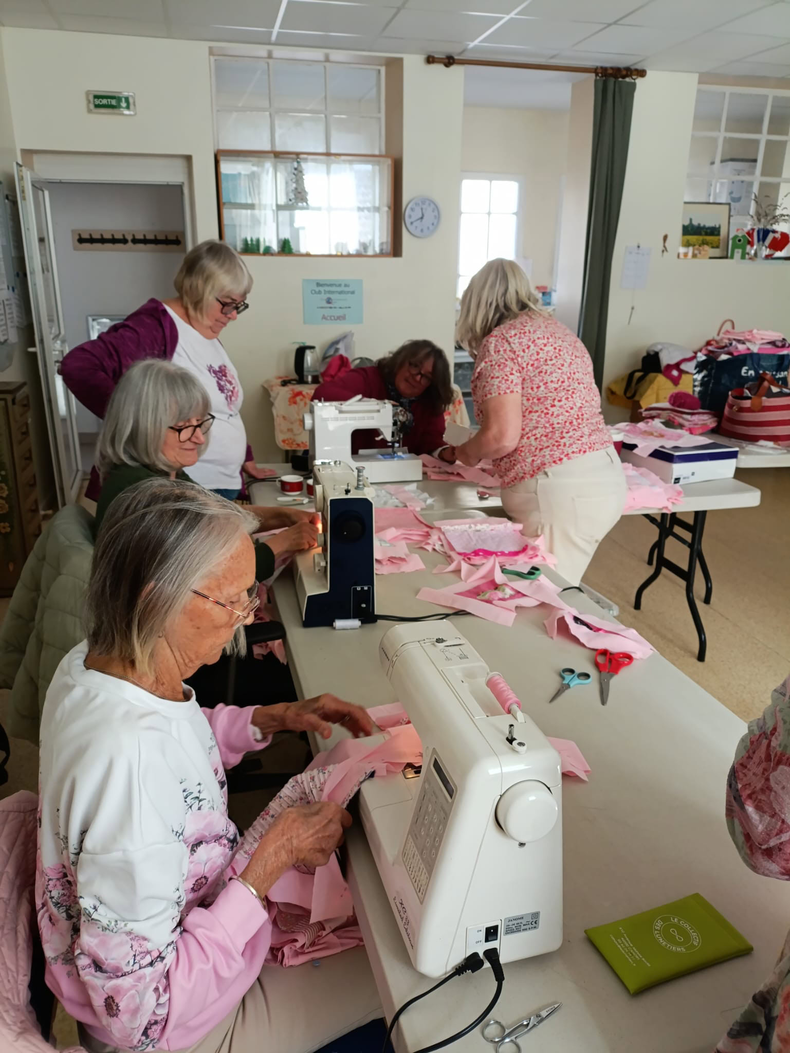 la créativité s’est mise au service de la solidarité. À l’occasion d’Octobre Rose, quelques membres du club se sont réunis autour d’un beau projet collectif : la création d’un patchwork aux mille nuances de rose, symbole de soutien à la lutte contre le cancer. De nombreuses mains, essentiellement féminines mais pas que…, ont participé à cette aventure textile. Chacun a apporté sa touche personnelle, un carré de tissu à son image, plein de douceur et d’espérance. Assemblés avec soin, ces carrés forment aujourd’hui une véritable œuvre commune, vibrante de couleurs et de générosité.